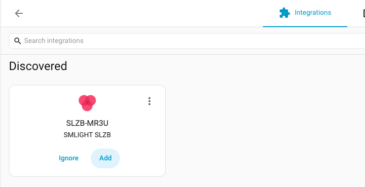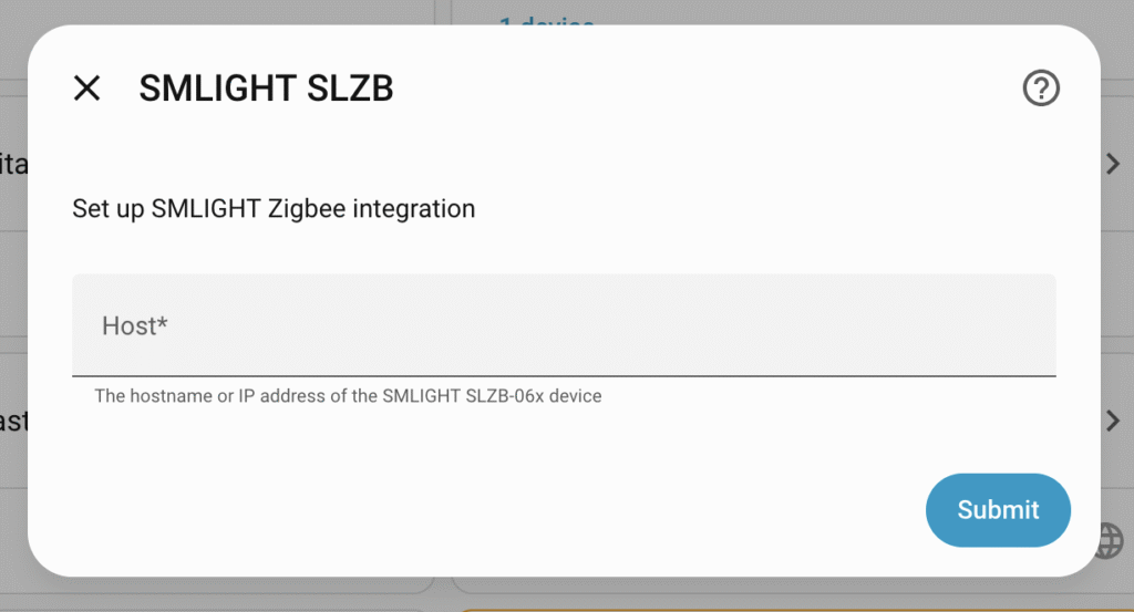 Sollte dies nicht der Fall sein, dann ist eine manuelle Einbindung sehr einfach: Ruft die Seite der SMLIGHT-Integration auf, klickt auf den blauen Knopf “Add Integration” und bestätigt die Einbindung in Home Assistant.
