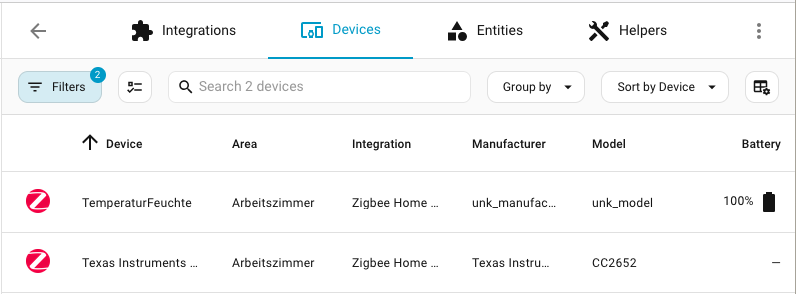 Habt Ihr nun ein oder mehrere Geräte hinzugefügt, dann sind diese im Zigbee-Bereich unter “My Network” sichtbar: